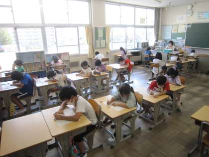 今日は2年生の月例テスト日でした。国語と算数でこれまでに学んだことが定着しているかを知ることができます。まだ覚えていない漢字や苦手な計算を知ることで、その後の学習でやることがはっきりします。