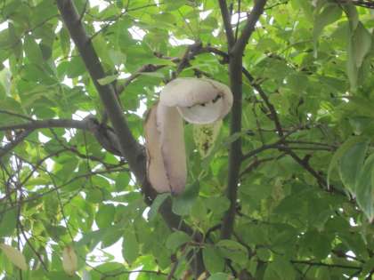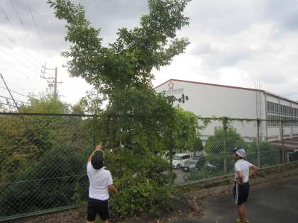 なんと、今日、別の場所で発見。「こんなところに?」と子どもたちもビックリでした。実もたくさんついていましたが、すでに虫たちの餌になってしまって食べられそうにありません。