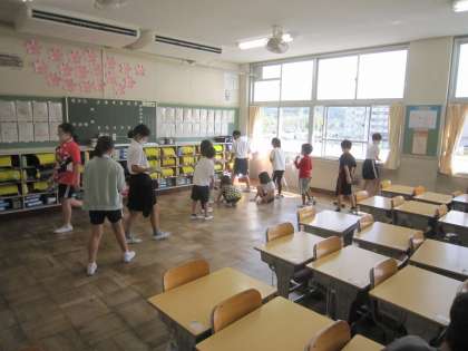 通学団の班長役だけでなく、1年生の掃除の手伝いも行いました。少しだけ6年生の気持ちが分かり、6年生に近づいた気がする2日間になりそうです。
