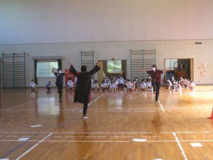 ALTの先生と一緒に体育館でハロウィンゲームをしました。