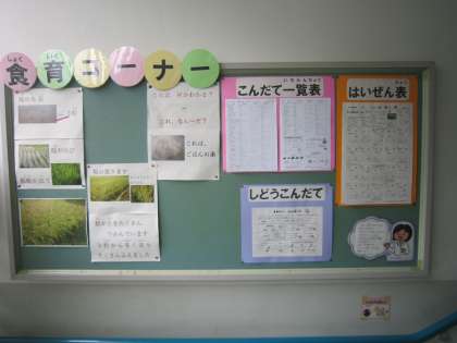 これまでオリンピックに関する掲示がされていた掲示板がリニューアルされ、食育に関する食育コーナーになりました。