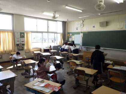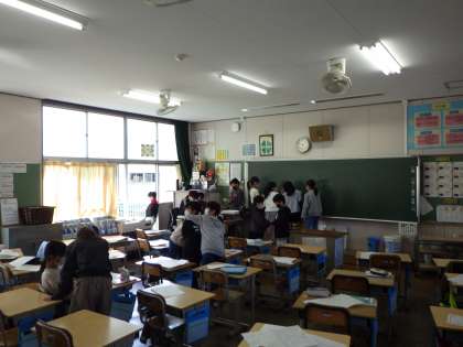 担任の机に集まってお話をしたり、読書をしたり、友達と絵を描いたりと過ごし方は様々です。教室にいない子どもは、元気に運動場で遊んでいます。