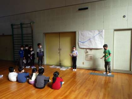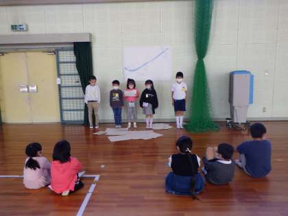 1組の発表を2組が、2組の発表を1組が観て、発表の練習をしながらよいところを学びます。この繰り返しにより、聞く人に伝わる発表の仕方を考えていきます。あと1週間でどこまで高まるか楽しみです。