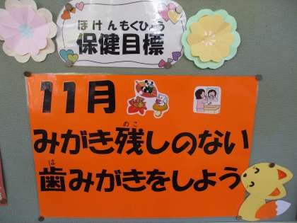 今日は、11月8日いい歯の日です。 公開日 2021/11/08 更新日 2021/11/08 お知らせ ていねいに歯を磨いて、いい歯で 生活しましょう。 11月の保健目標は・・・ 「みがき残しのない 歯みがきをしよう」 です。