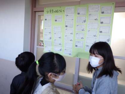 「1年生のダンス、かっこよかったよ」「5・6年生のソーラン節はすごい迫力でした」など感想が書かれていました。それを読む子どもたちの表情はどこか誇らしげでした。