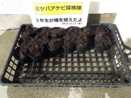 学校内では先日見つけた1か所しかありません。そこで、実から種を取り出し、植えることで増やす計画を立てました。