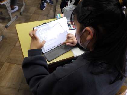 資料集とタブレットを活用して、社会の調べ学習です。
