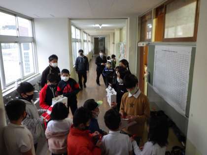 赤い羽根共同募金活動 公開日 2021/12/07 更新日 2021/12/07 各学年から 今日から3日間、JRC委員会が赤い羽根共同募金を行っています。 事前に委員会活動で各学級に説明に回りました。そのおかげで、多くの人が募金に参加しています。