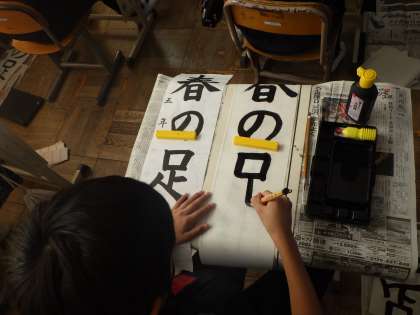書き初め大会5年生 公開日 2022/01/07 更新日 2022/01/07 各学年から 漢字も増え、毛筆にも慣れてきた書き初め大会。 5年生にもなると漢字が増えます。字のバランスだけでなく、4文字全体のバランスも考えなくてはなりません。