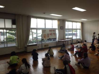 口呼吸を鼻呼吸にするために、口周りの筋肉に刺激を与える「あ・い・う・べ」体操をしました。ぜひ、ご家庭でも親子で一緒に試してみてください。