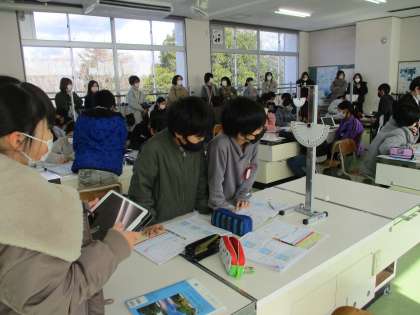 グループの仲間と協力し、実験の方法や手順を考えます。また、結果を考察する際にも仲間の考えと自分の考えを比べます。協働的な学習が進められています。