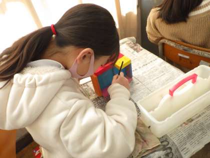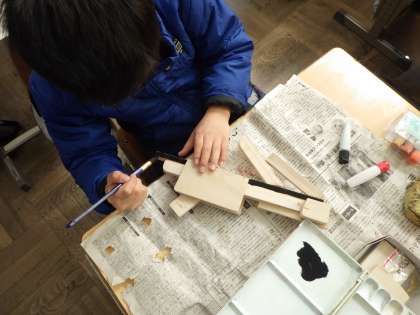 完成を見通して、どのように木を切るといいか、どのようにくぎで接続するかを考えながら部品を作っていきます。最後に色をつけます。
