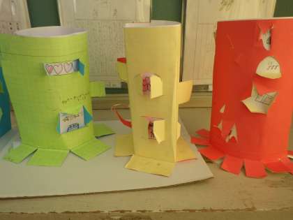 カッターナイフの使い方や紙を重ねて表現する方法を学びました。