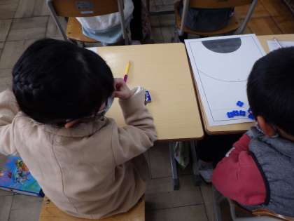 おはじきゲームで点数を数えることで大きな数の学習をしました。