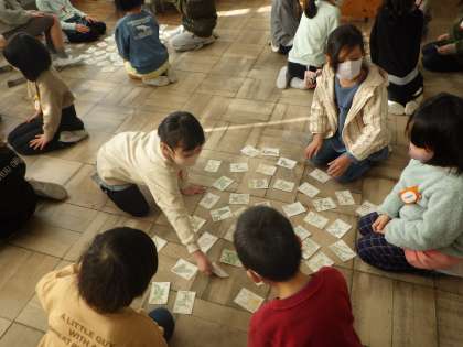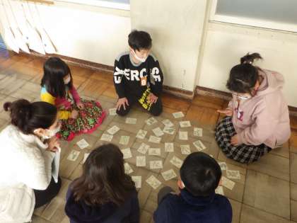 通常の半分の人数でグループを組み、やまびこカルタの練習をしました。