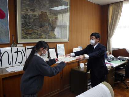 作文や詩、イラストの応募に関する表彰伝達を行いました。