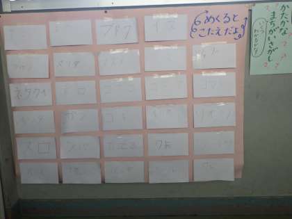 かたかなで似ている字を探しました。そして、間違い探しをするクイズをつくりました。