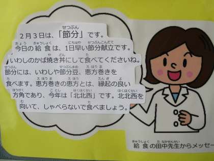 「節分」にちなんだ給食は、その前の2日に