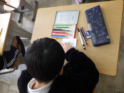 6年生を送る会に向けて3年生が準備を進めています。