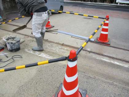 2月の終わりに、通用門(青い門)のコンクリート を工事しました。