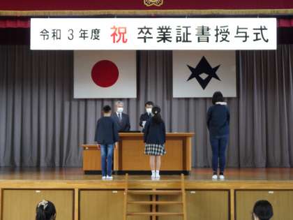 卒業式練習の最後に、六か年皆勤賞と後期ねれかて学校賞の表彰が行われました。