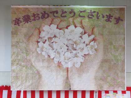 卒業を祝って、在校生から(2) 公開日 2022/03/22 更新日 2022/03/22 学校行事 卒業おめでとうございます 4年生と5年生が、1枚1枚のパーツを作り上げて 完成しました。 一人の力では完成できませんが、多くの力を集めて 作り上げています。卒業生も在校生も、一人一人の力 を発揮して、令和3年度の平井小学校での生活、成長 がありました。 そのことを忘れないでください。