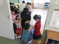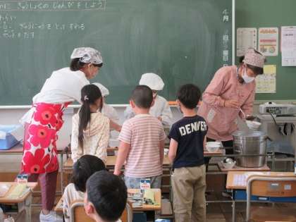 今日から時間割がスタートしました。1年生も5時間授業開始です。初めての給食では、給食当番の仕事や配膳の仕方を勉強しました。初めての掃除では、6年生のお兄さん・お姉さんからほうきの掃き方やぞうきんがけの仕方を教わりました。初めての5時間目の授業では、帰りの支度や一斉下校のやり方を教わりました。初めて尽くしの1日でした。