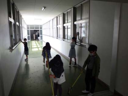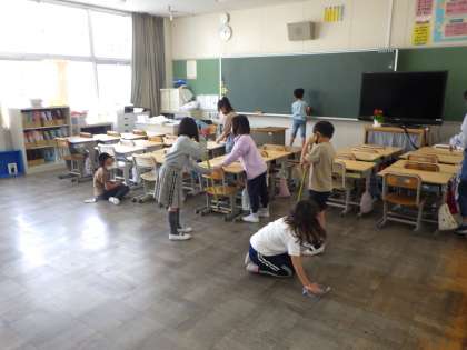 3月まで6年生に教えてもらいながら、一緒に活動していた2年生。4月からは、自分たちだけで取り組んでいます。雑巾がけやほうきのかけ方など、教えてもらったことを思い出しながら、きれいにしています。