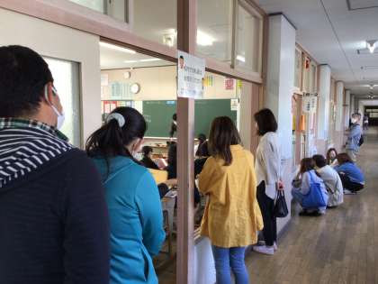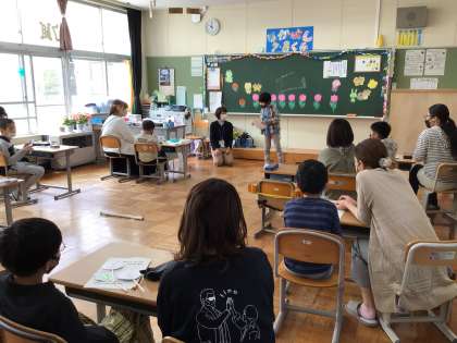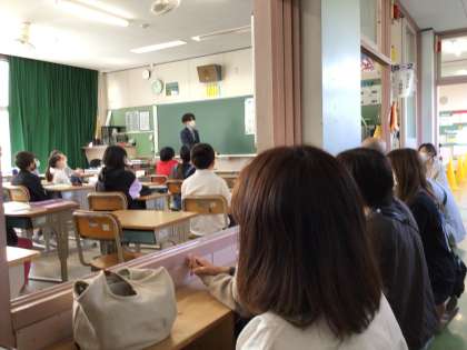 写真左は5年2組、中は6年2組、右は7・8組の様子です。