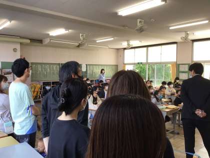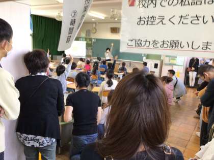 そのため、教室内に保護者用のスペースを区切って、参観していただいています。