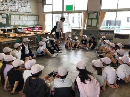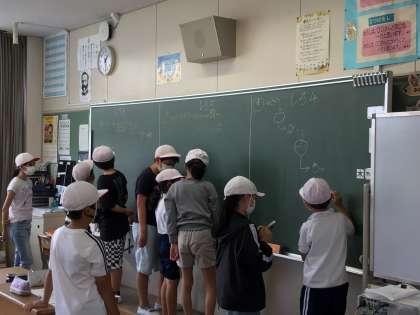 6年生のリーダーを中心に色々な遊びを考えていましたが、WBGT(暑さ指数)が高かったため、急遽室内遊びに変更となりました。