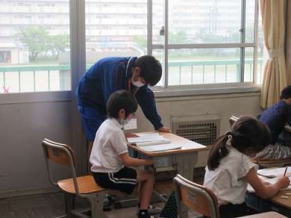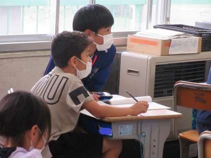 月曜日から中学生が職場体験として、2年生の教室で先生の仕事を手伝っています。今日が、体験最終日でした。授業中の個別指導の手伝いをしたり、休み時間に一緒に遊んだり、充実した3日間のようでした。体験の感想を聞いたところ「先生の仕事は大変だなと思ったけど、とても楽しかった」と笑顔でこたえてくれました。2年生の子どもたちにとっても思い出がたくさんできた3日間でした。