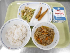 今日は給食に豊田市や愛知県でとれた食材を多く使用する「愛知を食べる学校給食の日」でした。豊田市でとれた「大地の風」で炊いた麦ごはん、愛知県産の牛乳、豊田市産の豚肉“ひまわりポーク”・にんじん・キャベツ・愛知県産の玉ねぎです。そして、愛知県産のめひかりを使ったフライ、豊田市でとれた大豆で作った油揚げ、愛知県産のチンゲンサイが提供されました。地元の方々が心を込めて育てた食材を、味わっていただきました。ごちそうさまでした!