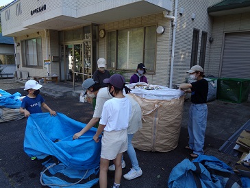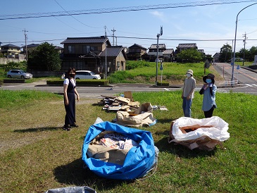 それぞれの地区の集荷場所では、保護者の皆様や子どもたちが資源を分別しながら集めていました。