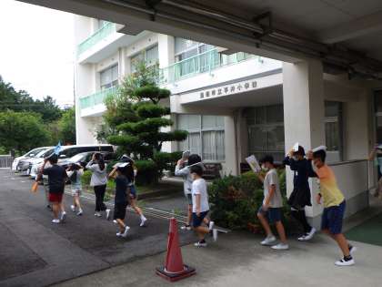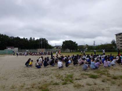 感染症対策、熱中症対策をしての訓練でした。事前に「おはしも」の確認をし、事後には振り返りを行いました。一人一人が安全に非難するために大切なことについて考える機会になりました。