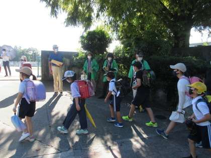 朝から暑かったので、子どもたちはやや元気のない様子でしたが、民生委員さんたちの声かけに会釈で応じていました。