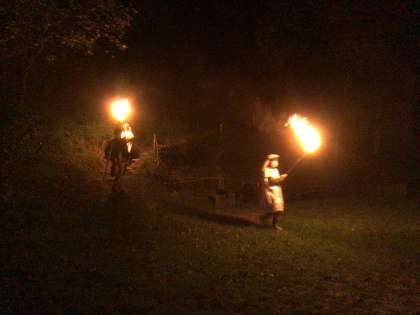 第1部では、「遠き山に火は落ちて」を歌って火の神・女神を迎えた後、炎を授かりました。