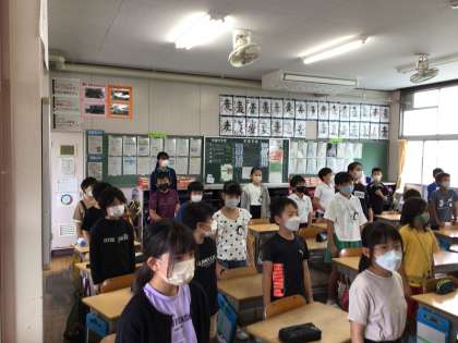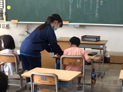 その後、体験をする学級へ移動し、教室で挨拶をした後、朝の会から一緒に体験をしています。