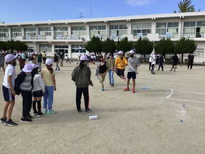 その後、班ごとに5分間の練習。引っかかっても回数をリセットせずに、通算の跳んだ回数を数えます。少しでもたくさん跳べるように、声を掛け合って練習あるのみ。