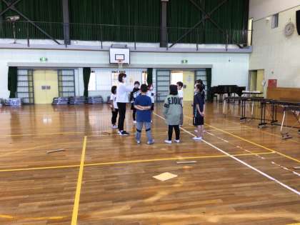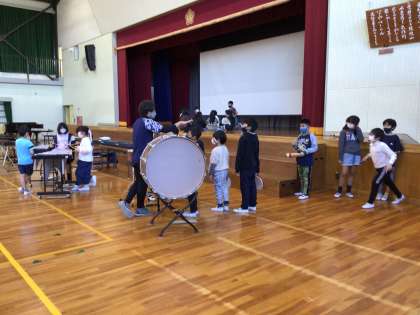6時間目、運動場では5,6年生がソーラン節の練習を、体育館では4年生が音楽発表の練習をしていました。