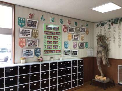 ここには、「がんばる平井っ子」と題して、平井小児童の学級写真や行事写真が掲示してあります。