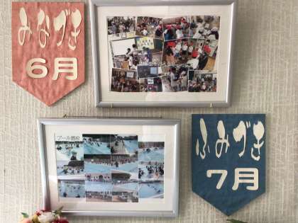 このコーナーは以前からありましたが、行事ごとの写真を額に入れるなど、今年度、改めて整備しました。