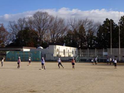 4年生が体育科「ハンドベースボール」でベースボール型のゲームを楽しんでいます。