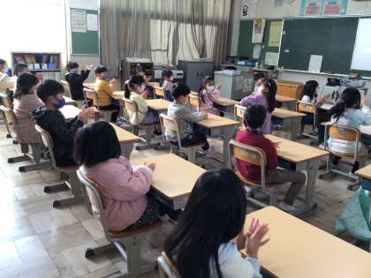 「表彰を受けた子におめでとうの気持ちを込めて拍手をしましょう」という典礼で、各教室から大きな拍手が聞こえてきました。