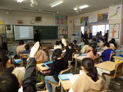 授業参観に合わせて、校内書き初め展も保護者の方々に見ていただきました。