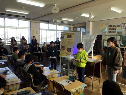 子どもの作品を見る保護者の優しい目が印象的でした。ご家庭で作品について話題になるとよいです。
