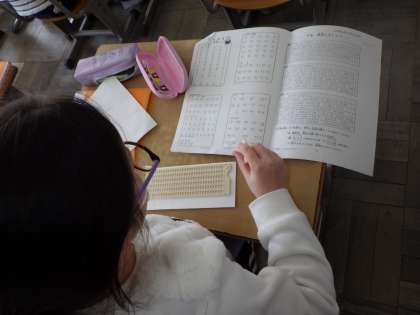 まず、文章で下書きをして、次に一覧表を見ながら点字に変換です。