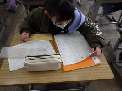 右から左に文字をうつことや「〜は」は「〜わ」とすることなど、普段とは異なるきまりに子どもたちは戸惑っていました。そして、改めて、その大変さを感じていました。