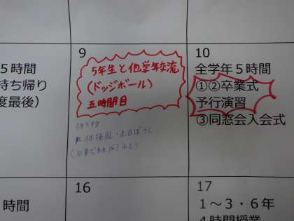 練習と同時に、他学年との交流も進めています。卒業式までに、各学年と6年生で交流の機会を設け、一緒に楽しむ企画です。どちらにとっても温かな思い出になりそうです。