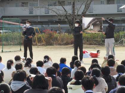 今回は、休み時間の地震発生を想定して行いました。
